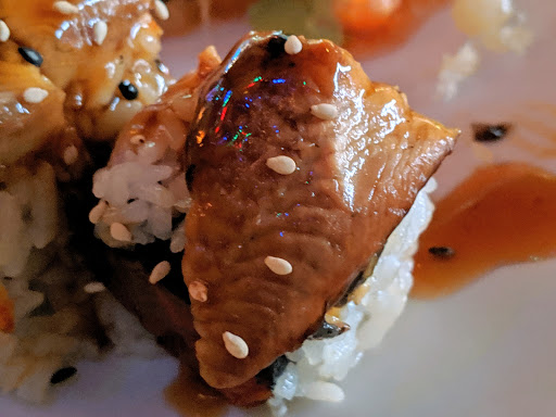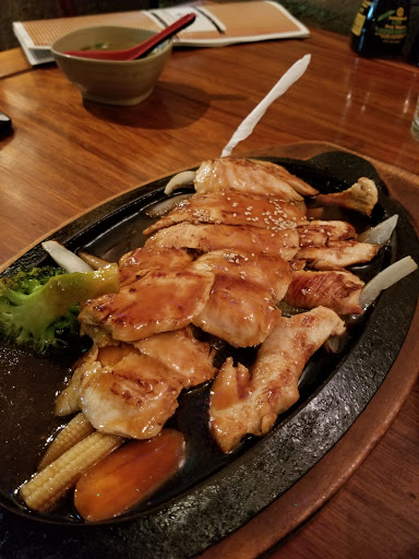 Pleasant staff, cute interior but I had to ask 3 times for a fork. My sons sushi/sashimi combo was wonderful with nice presentation but my Teriyaki steak (?) and shrimp was only mediocre. No plates were cleared from the table. Server was biting his nails as we left....I wonder if he washed his hands.