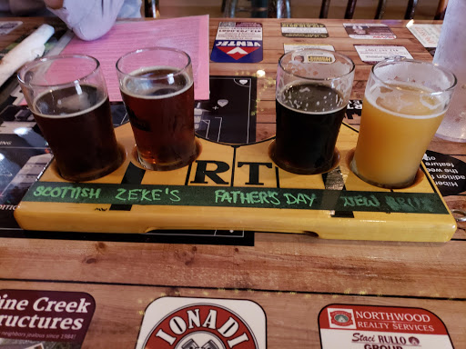My girlfriend and I love this place. The food is very very good. Every time we go we order the Beer-Cheese Dip as an appetizer. Lately theyve been making the dip thinner and less spicy (which Im not too exited about) but its still worth a try. I always order the Turkey, Bacon, Ranch Wedgie. Its my absolute favorite thing to eat there. Portions are big, which Im a huge fan of (being 6 4" 230lbs). They have an awesome selection of beers they brew onsite. Growlers are around $3 (+ the cost to fill them) which is very cheap compared to places like Victory Brewing. I recommend trying the Arctic Amber.