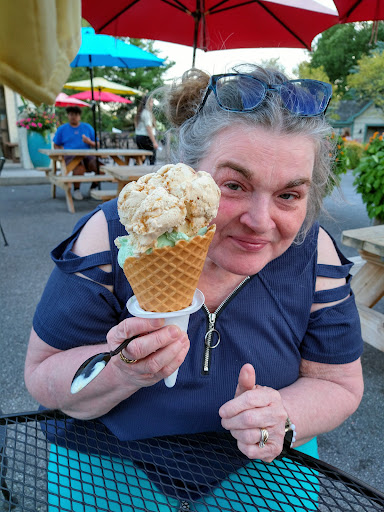 Friendly service, great ice cream, clean, a lot of seating, great location, a lot to choose from!