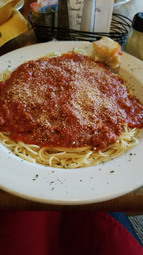 Poor service and was not completely satisfied with the food either. 1st the salad bar was small and there was bareley any lettuce in the bowl. 2nd my pasta I ordered it with light on the meat sause and it came out in a swimming pool of sause also asked for a meatball. They forgot ... And the sause had a mass tomato paste taste no real flavor but tomato....:( but the bread was real good if that counts. But Ill probably not be conning back anytime soon.