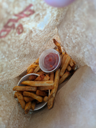 My wife and I ordered each a bacon cheeseburger and large fries. When we received our food our big bag was half full of fries (had to be equal to 5 or 6 large fries) burgers were done to perfection and there was way more fries than we could eat. Service was superb and the staff was vary friendly! Wonderful experience!!!