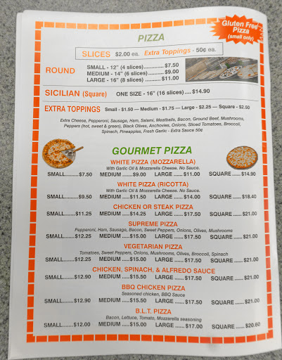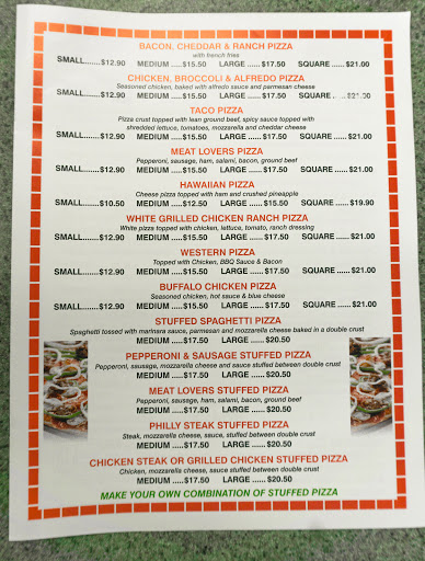 They have prices on menu wrong. Steak is on the toppins list @ $1.75 for a large pizza, so I ordered it. They charged me $6.75 for the topping. I said something to the guy and he argued with me saying I should know that it is more for steak topping. I told him fine, you should take it out of the toppings section if you want to charge more. So he continued to arguee with me that he doesnt need to change his menu because some people dont know that it cost more. Will NEVER go there again after he insulted me. The food is not that great. Save your money and go to Palermos down the street. Their cheaper and MUCH BETTER