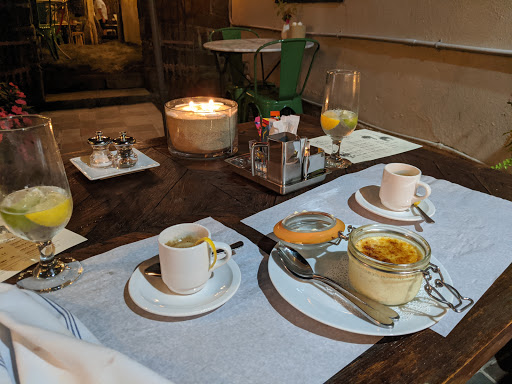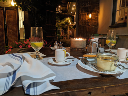We did not even make it into the door! We were a party of three, well dressed and in our late twenties. We walked through the alleyway that is not well marked as to where to go to enter the restaurant in the wintertime. The eldest of the owners (with the french accent) came into the same alleyway from a door to the left and asked us what we were looking for. When I said we were interested in a menu, he told us to go next door because his restaurant was "expensive for dinner." We all looked at each other then back at him, aghast, and he laughed at us! Obviously, during a recession, any money is not good enough for this elitist restaurant. They would prefer that we riffraff stay out of his already empty restaurant. Also? Upon doing research after returning home...they also own the bar next door! Thankfully, we did not take his advice, and will never return to either establishment, and advise our friends (who frequent New Hope) to do the same. Bad move, old man.