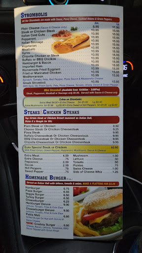 The food here was great! I came with some friends on a Saturday (around 2:15 ish) and we were lucky to find a table since there wasnt really much in terms of seating (I got the impression that most customers did take out there). We ordered the pizza fries for the table, and they were exactly what youd expect: fries topped with tomato sauce and cheese. Yum! For myself I ordered the homemade fried eggplant Stromboli, and it was delicious (and large!). The only thing I wish is that it came with a side of marinara sauce to dip it in, but thats just a personal preference. Someone else at the table ordered the baked ziti and she loved it, insisting that it tasted like the pasta shes had in Italy. The other person I was with ordered the cheeseburger, and she enjoyed that too. Overall, we had a good experience here, and would certainly consider coming back.