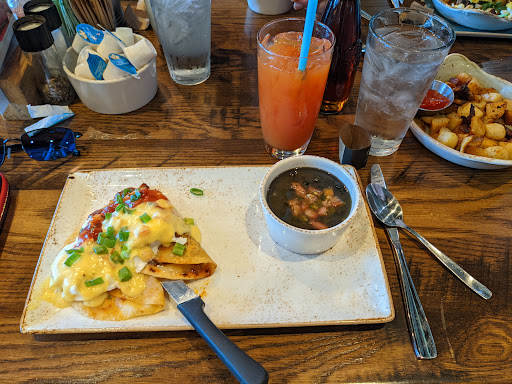 Service was awful. Hardly saw our waiter and waited a long time whenever we asked for anything. Food was ok, but eggs ordered over easy arrived completely hard. Youd think a breakfast place could handle an over easy egg