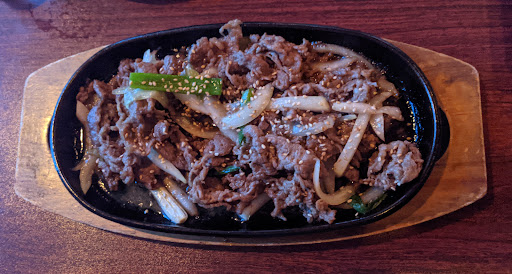 Our first experience (at supper) was a happy one. Slightly spicy Seafood Soup, Pork Wasabi Dumplings, Pork and Kim Chi Bok Um, beef dish accompanied by several vegetables. Meats were cooked to tender and tasty perfection, vegetables full of flavor. Excellent service from friendly staff. Im planning to go back for lunch soon. Subdued decor was very relaxing. Live piano was quite nice. Off-street parking. Go!