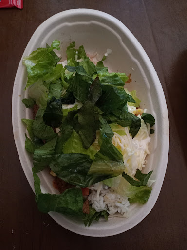 Giving 1 star because I dont know how to give a half star. Been going here pretty much since it opened and have always been very pleased. Hadnt gone in the last 2 or 3 months, and I came today and honesty was extremely frustrated and disgusted with what I experienced. From start to finish; every step got worse. To start, the first employee commencing the burrito construction (or destruction), had to ask me 3 different times what rice, bean, and protein I wanted. And then she proceeded to scrap the very bottom of the rice container for every possible molecule as just to get a half a scoop of rice... "is that enough for you?" Well Im not a complainer so I guess so. I asked for half steak and half barbacoa, I was given barbacoa on the top and steak at the bottom, and then all the cold (sour cream, cheese, salsa, lettuce) wadded into a mound right in the center. Within three bites, barabacoa was sayonara, and the rest of what I was able to stifle down was nothing but a cold mess of mushy dairy and vegatable. Halfway through the forced consumption of the burrito, pulling the aluminum wrapping past the halfway point unleashed the last third of the burrito onto the table due to the sloppiest wrap job Ive ever witnessed. Also had to ask for the Chipotle Tabasco sauce because the condiment was horribly neglected. What really topped it off was when I went to sit down, hoping to land a booth cause I came with my female companion. The last one available was promptly and selfishly taken by a single Chipotle employee who was in front of me in line. Im sorry but I am in the service industry and if I decided that I was going to eat at work I wouldnt take one of the best tables in the house. Especially as a solo person when there are groups of people trying to sit, eat, and converse comfortably. I came at 2:30pm, so not during a rush or anything. There is really no excuse for the quality, or lack there of, of my experience today. Worst overpriced burrito ever. Bad Chipotle, bad.