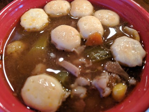Mushroom soup is great, even my kids loved it. Ribs with smoked potatoes are delicious.