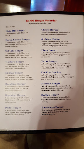 Its a bar. The food is ok. The choices are not plentiful in Oil City