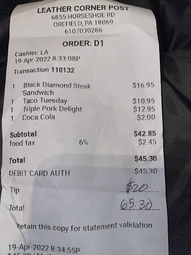 I frequent the Leather Corner Post on a relatively regular basis. The food is excellent for bar food, Ive never had a meal that I didnt enjoy. The wings are juicy and delicious, and a good size- not those little one-biters that some places serve. Its a mix of clientele, young people, local "rednecks" and the more well off, just a group of regular people where everyone feels at home. Everyone is friendly, and the bartenders are on top of things. There is usually something going on, a band, trivia, karaoke, open mic, etc. Its always a good time. :)