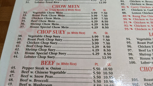 Ordered from here twice. The order was fine. Although after eating the vegetable lo mein I felt sluggish with a headache and noticed my heart fluttering. I noticed that it tasted rich and thought maybe it was made with too much MSG. My boyfriend and I ordered again recently and I asked if the vegetable lo mein could be made with no MSG. The girl on the phone repeated what I said and I heard a man in the background saying something. The girl said she was sorry but they couldnt do that then said it would cost $2 to have it made without msg. I was a little annoyed. We also ordered fried dumplings, crab rangoon and combination platter of shrimp chow mein. The dumplings were only fried on one side but had a decent taste. The crab rangoon was hit-or-miss as far as the filling, some were filled some were not filled as much. The worst of all was my boyfriends combination platter of shrimp chow mein. It came with pork fried rice and cabbage and shrimp and thats it- no other vegetables and no noodles. It was also supposed to come with an egg roll but instead they put in a bag of fried wontons. Normally when a Chinese restaurant is out of something they offer a substitution or a can of soda. But they didnt even say anything. I think next time well drive the five extra minutes down to New Chinatown weve never had any issues with them.