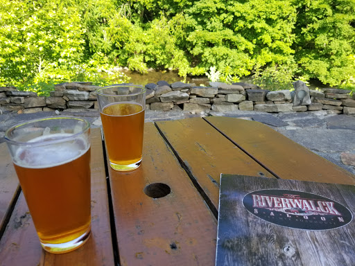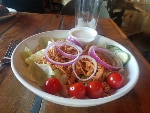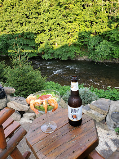 This place has a great atmosphere outside. Inside its crowded and uncomfortable. Parking is an adventure. There are probably some good dishes (the burgers?), but both times we went there to eat the food was mediocre. The Nachos Locos, despite being a very visually appealing dish, have little taste and need seasoning or some sort of pizzazz. The fajitas also were bland and had three small tortillas which were insufficient compared to the large amount of hot meat and vegetables provided with it. The coleslaw, as someone else mentioned, is awful. Our one guest considered it inedible. The fries are good and the haddock is good as well. The Monster Quesadilla is unremarkable in taste and presentation, in spite of its name. This visit the kitchen got the nachos order wrong. We didnt get silverware and napkins until we were halfway through our appetizer because none was available and they were washing silverware. No plates for the appetizers. The waitress let our drinks go dry twice, to the point we had to flag her down to get drink refills. The waitress couldnt seem to focus on one table at a time and would go by quickly and before you could blurt out something you needed, she was gone to the next table. The bill had an error on it. The outside tables are too small if seated to capacity. We had to clear stuff off of our table onto a neighboring empty table when someone brought our entries out. Towards the end of the meal, some employee came over and tossed a pile of napkins on the table and walked away without a word. Bottom line: if you want some drinks by the creek, this is a great place, especially if youre riding around on your motorcycle and are looking for a stop. Dont have high expectations for the food or service.