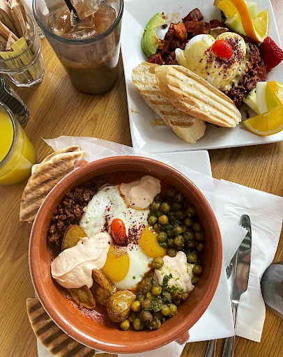 Adorable little cafe with a wide selection of Mediterranean fusion cuisine and great coffee. Came in on a Wednesday for brunch with my parents and was promptly seated, though I was told it gets quite busy on the weekends. I got the brisket huevos rancheros while my folks split the green shakshuka. Would definitely recommend both. Didnt hurt that the owner was genuine in his interactions, and did not hesitate to exchange some quick stories. Overall, great experience.