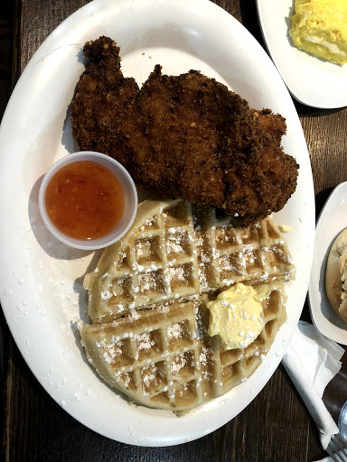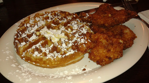 Chicken and waffles: need I say more? Well, I WILL say more: they keep the chicken separate from the waffles, so its up to you if you want to lump them together, instead of having that choice made for you in the kitchen. Personally, I like my chicken separate from the waffles and syrup. They also use a unique spice blend on the chicken that I really love and havent tasted anywhere else. Other offerings Ive had here (I stick to the breakfast stuff) have been equally excellent: omelettes, pancakes, etc. The staff is always pleasant, and the prices are reasonable. Expect a loooong wait on weekend mornings. Its worth the wait, however.