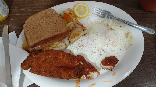 Clean small breakfast restaurant. Great food menu for vegans...l had veggie omelet which was delicious with spinach broccoli mushrooms onions and my fried had the fish and grits! He was smiling said the fish was good with nice portions