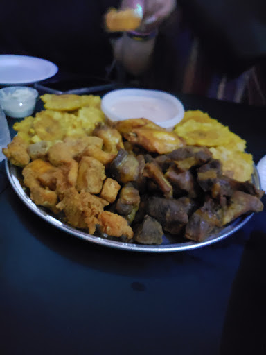 Few things: first, its on Hope and Dauphin Sts, not Howard. Second: This is a local bar--Baseball game on TV, area locals entering, loud Spanish music blazing and the bartender bustling over to us with a grin and asking, in Spanish, how we were doing and if wed like anything. When we mentioned food, we were handed menus and the bartender went, still smiling, to see what others would like to drink or eat. I got the shrimp & steak nachos, a pork taco and a steak taco. My dinner compatriot ordered the shrimp mofongo and shrimp tacos. We got the food to-go. We waited a bit, as our food cooked. The bar was loud, as bars can be, but everyone was pleasant. The food smelled delicious and when we got home, the taste was amazing. Firstly, the tacos we ordered were simply meat and tortilla. No other fillers. Perhaps the taco supremes (which we did not order) had them, but the plain tacos did not. The cooking is great, nice, juicy, perfectly seasoned. The nachos had loads of cheese and meat--tortilla chips werent homemade but it didnt matter. It tasted excellent. As for the mofongo, my dinner compatriot devoured it. It was excellent, as were the shrimp tacos (which also had only shrimp and tortilla). So if you dont feel like eating in, call ahead and just be ready to repeat yourself a bit if, like me, your Spanish isnt great.