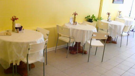 On an 18-nch plate they had spread out 5 small mountains of lentil stew, yellow peas stew, Collard green, steamed cabbages, salad chickpeas in spicy sauce and green beans with carrots. And a lot of iniera (the pancake-like bread. It is $8.50 and I dare someone to sit and eat it all -- its enough for two people. I took the rest home with me. The vegetables were fresh, they were playing traditional music and has a light incense coming from the other room. It is a nice little place with 4 or 5 tables. Could be an intimate setting for an inexpensive lunch.