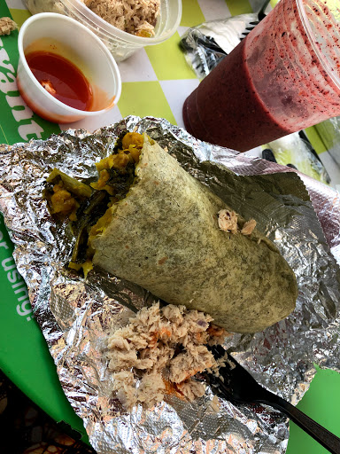 I had the jerk seitan and it was pretty good, a bit too peppery for me but would be amazing if you liked that taste. The super powers juice ruled, I was sad when I finished it. The shorter guy with the head wrap that worked there and helped me out was super sweet and helpful. Would definitely recommend.