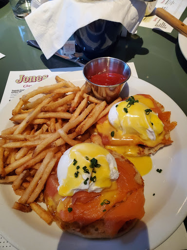 The first thing youll probably notice is the atmosphere when you walk in the door. Jones is full of it. This is a excellent restaurant downtown in central Philly on the corner of Chestnut and S 7th. Jones consists of a large dining room that is on the left of the front door when you enter. Straight ahead is the bar and theres another smaller dining area upstairs. The food? Its really good food! They serve quick meals like soups and sandwiches or larger entrees like crab cakes, chili, pastas, etc. The menu is very well rounded and even the most finicky person should be able to find something they like. They also serve brunch on Sundays. Like many other places downtown you need to watch the mixed drinks here as they can skyrocket your bill quickly. However Jones does not serve a weak drink in my experiences there. Jones has a great friendly staff and I have always received great customer service during my visits. Its refreshing to visit a establishment and run into the same wait staff time and time again. They must be taking care of their employees and it shows in they level of service provided. Give them a try if youre downtown. Its about 2 blocks from the Liberty Bell.