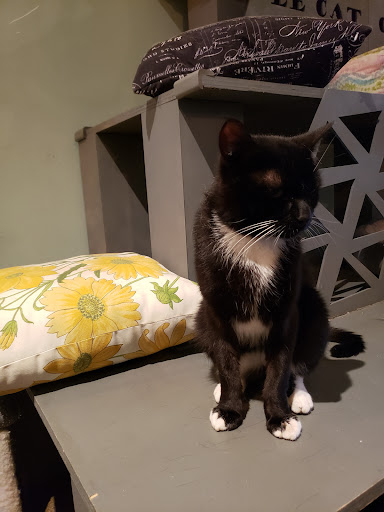 What a wonderful idea to bring sweet homeless kitties to a loving environment so that they can find a furrever home. If you are thinking about adopting a feline companion, then please visit the cafe. The staff is friendly and helpful, and the cafe is so unique with all kinds of interesting furnishings designed especially for the kitties.