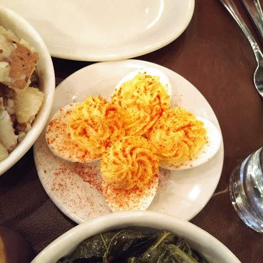 I dont know what I was thinking when I went in here, because I HATE BBQ. I honestly thought "Im so hungry, this place has always looked cool, Im sure I can just get a burger." Then I was seated looking at a menu and felt like it was too late to back out. The good news is that everyone was super friendly and the entree, BBQ chicken, was pretty damn tasty. Sadly my sides were dramatically bland, especially the German potato salad which tasted more like cold potato flavorless lumps. It gets four stars for atmosphere, decor, friendly staff and a surprisingly good chicken BBQ. Ive never been back because, again, as a general rule I dont like BBQ. But if YOU do, you should check it out!