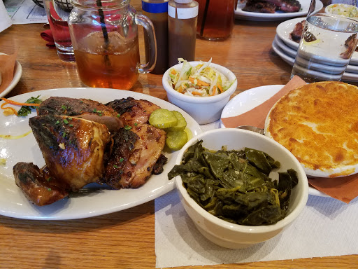 Dont come here. 1.Food The food was meh. Brisket was dry, ribs were actually tasty but had too much sauce. Pulled pork was ok, nothing special. The sides I tried (potato salad and collard greens) were very sour (the greens had too much vinegar. 2. Service The service here is terrible. After being seated, we waited about 10 mins. for someone to serve us. I ordered soda, and they brought out a cup of ice and a can of cola, which was fine, but the can wasnt even chilled, it was room temp. Overall, the service was very slow. The waiter never came around to ask us if we needed refills or anything. They actually forgot to bring out our ribs until I caught their attention minutes later. We were also given an assortment of BBQ sauces in bottles, one of which did not have its lid screwed on tight enough, and spilled all over the person in our party who used it. Of course, the staff never stopped to help us clean up the mess. 3.The restaurant itself The music they played was incredibly loud, so much so that we couldnt hold normal conversations without practically yelling. The restaurant was too hot, and I was covered in sweat by the end of the meal. The bathrooms were also dirty. TLDR; Meh food, terrible service, awful atmosphere. Definitely will not come back.