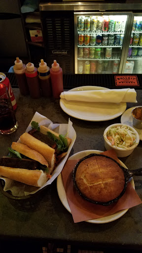 Takeout. Pulled pork and mac n cheese. Host was overwhelmed by $20 bill and change, to make my return even bills with no coins. She gave me an oddball about back... not worth walking back to get my 75c. Pork- $9 for about two servings worth, plus pickles and onions packed on top. Plus sauces. Good, tender, barely room temp. Still tasty. Mac n cheese- $6 for FEWER than 10 fork fulls. Packed into container, filling only half the space, looking like the remnants of the last batch, as if they forgot to complete the order. Good, but only memorable for a $3 serving- not $6. Overpriced like most South Street places. Still looking for somewhere worth its prices.