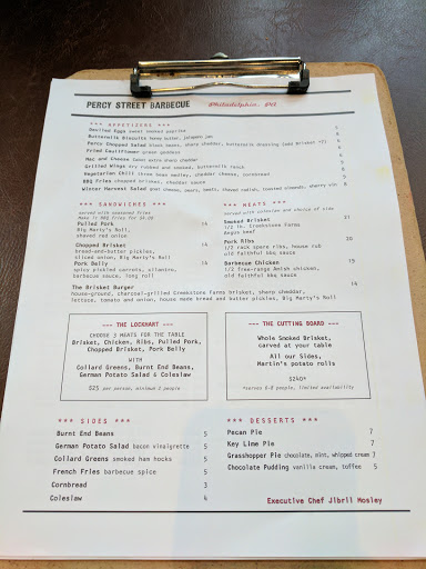My wife and I popped in around 4 PM on Satuday, October 16th. The restaurant had a few tables going outside, and four or five tables of diners inside. I ordered the PST, and it was awesome! Two long toasted rolls, filled with a slice of pork belly, cole slaw, and pickeld green tomato. It was the perfect blend of smoked bacon meaty flavor, cooled by light touches of the cole slaw and tomatoe, and wrapped in a freshly baked, freshly toased bun. Five stars!! Collard Greens and grilled red cabbage were delightful, too. My wife got the chopped brisket sandwich, a round roll stuffed FULL with delicious pork. Her side, German Potato Salad and homemade cole slaw, were tops, too. I am not sure what happened to ChiChi below. I would recommend Percy Streen in a heartbeat! (Next time, we will leave room for desert!)