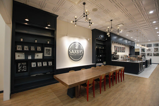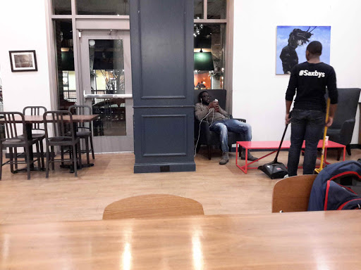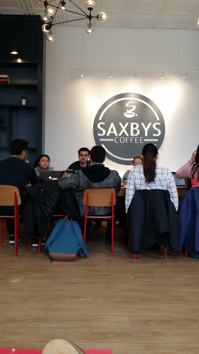The best thing about Saxbys is that there are plenty of seats (if you dont mind sharing a large communal table) and outlets. The menu is standard coffee shop drinks and food. People go to Saxbys for studying, not really for good coffee or snacks. Theres good lighting, its not too quiet or too loud, and no one minds of you stay a very long time