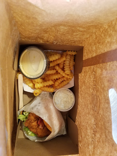 1. Fast and friendly customer service! 2. Great marketing and appearance, inside and outside 3. Very clean 4. Food was pricer than I was prepared as an out-of-towner, first time diner but was not disappointed in the experience 5. Ordered a chicken sandwich and burger (had cherry peppers?) unsure of the name and a salted caramel milkshake. And an order of fries to share. 6. 5 guys may give u more in the serving of fries, but these crinkles were heaven 7. The burger patty was vary superior than the chicken sanwhich, and superior than 5 guys or any other sit-down, fast service joint (the level above fast food, not Wendys/McDs level. The Chiptole level of food/speed/service). 8. Highly recommend!!!