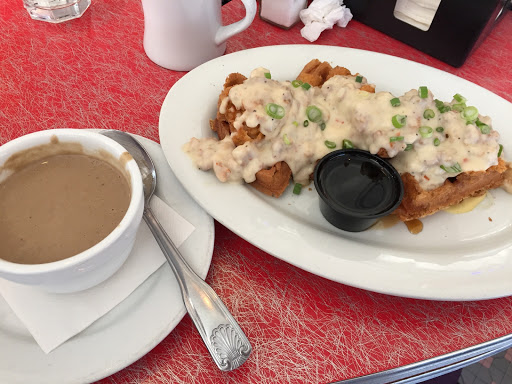 My rating is the average between the bar (nightlife) and the diner (brunch). Brunch is an obvious 4-5 stars, excellent food, mildly subpar service because of the unattentive hipster/yuppie staff. Nightlife is pretty much horrible, I hated coming here when I was in college and it hasnt changed very much. They overcrowd the place, and the crowd itself is made up of inner-city-wannabe suburbanites. If you come here for brunch, however, while stepping around the hungover people who were there the night before, too, you can enjoy yourself chicken fried steak, salmon eggs benedict, and lots of other types of american fare youd expect. Its cooked very well, but Im not sure you could take your parents or even a date here. This is not a try-hard place, and the staff absolutely will not try hard, because they are hungover just like half of their patrons. If you have to wait a few minutes for someone to arrive they wont seat you and ask you to go to the bar, if the bar is full they wont let you sit anywhere and will be standoffish if all you order is water and even tip. Pretty rude. tl;dr, come here for the breakfast food, not the service or the bar.