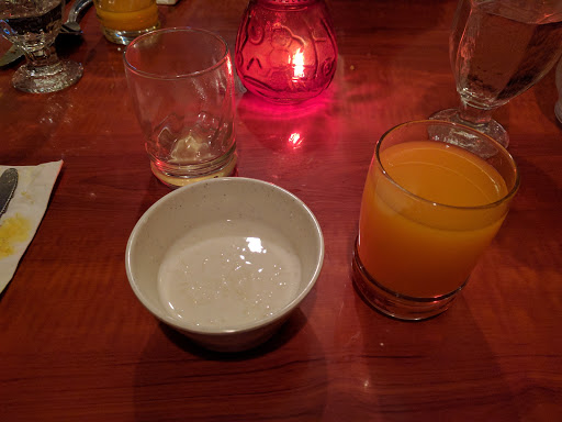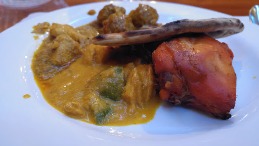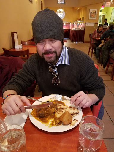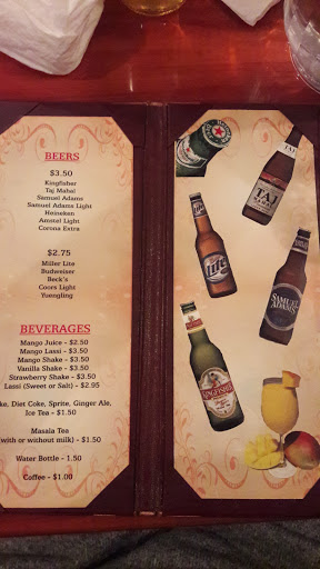 For dinner, they serve complimentary mango juice and leave a pitcher of ice water on the table so that you dont really run out. They have a buffet, but I usually cant resist ordering from the menu. They ask how spicy you would like your curries, which is nice--and they have the most flavorful Navratan Korma Ive ever tried in my life. I dont know why some of their accompaniments are listed with prices on the menu, because when I tried to order onion chutney for my samosas or to go with the vegetarian platter, they always say "no, no, it comes with it." Perhaps it is an old practice or something only takeout buyers would order extra of, because theyve always given it to us at no additional charge. Honestly, this is the only place Ive ever had a curry that wasnt too bland for my tastes. I usually have to order takeout Indian so I can flavor it more at home without doing too much work, but Ive eaten in at Sitar twice and loved it both times. They definitely oblige requests.