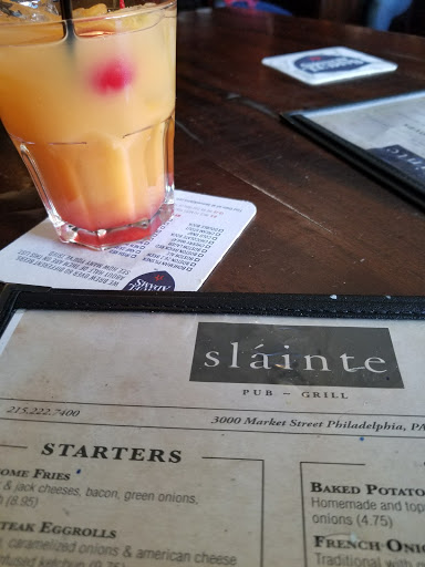 This pub on the corner across from both 30th Street Station and the IRS building is often visited by rail travelers looking for a drink and a bite during extended layovers. Just a block away from Drexel University, youll also find students, professors, and administrators alike drop in for the occasional discussion or celebration. Slainte is your standard Irish Pub with a classic dark wood finish. Seating is plentiful, both at the bar and at one of the many tables. Large parties are usually well accommodated in the rear of the bar, where events (such as painting with wine) are occasionally held. Bartenders here are great and the wait staff is consistently friendly and upbeat. The entire staff is incredibly accommodating. Food here is great. You cant go wrong with the appetizers, which are $5 during happy hour. Burgers are always a good choice and the Salmon Caesar Salad is a great bet if youre shooting for something healthy. Those looking for something more in the Irish spirit should try the Shepherds Pie or Bangers and Mash. If you find yourself in Philadelphia for a few hours by way of the train and need to kill some time, Slainte is a colorful and fun place to have a good experience or two before youre on your way.