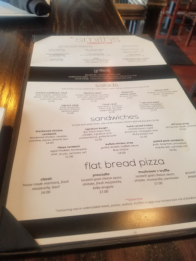 Smiths is basically a sports bar, but they have above-average food. The turkey chili was fantastic, and the guacamole and wings were good too. The beer selection wasnt huge but was pretty good. Was great for hanging out, eating some good food, and watching football.