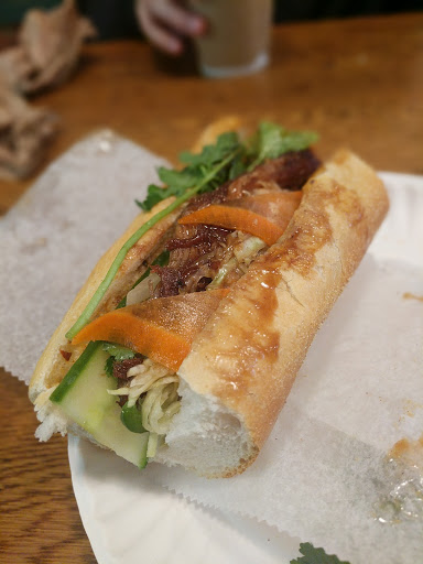 Surprisingly delicious veggie sandwich. Vibe is missing something.... Cant put my finger in it. May be great if it was also a coffee shop where people could hang out, socialize. Idk.