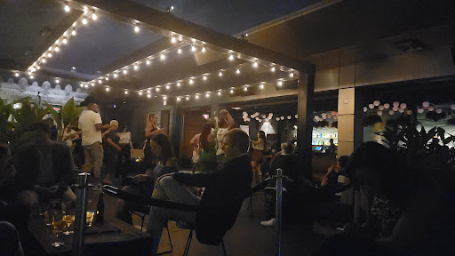 Ive been here a few times because its the hot destination in the summer months because.. rooftops are great. PROS -Trendy and upscale, plenty of space both indoors and outdoors. -Good location, walking distance to all the other Old City bars on the 2nd/Market area and also IBG. CONS -Always a line. They cap you based on how many people can fit in the elevator so the line goes by painfully slow. -Its a hotel bar, so think people who go to hotel bars, which isnt really your usual 20-somethings crowd -On the same note about hotel bars, theyre hotel bar drink prices that are fine for those on the older spectrum trying to woo ladies, or those with credit cards expensed by companies -The music is hit or miss. Its house-y, lounge-y vibe, nothing you can really full out dance to. -While this is a rooftop, its only the 6th floor or something, and theres large trees and buildings blocking your view I think for a hotel bar for someone visiting the city, or actually staying at this hotel, its a great vibe and sticks to their lounge feel. But if youre trying to booze up and have a fun night, skip this.