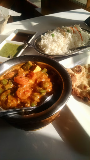 The first time I went was okay, I thought they were high and the food was only okay, I tried a different dish this time, prices were still high but the food was great. Although the price is high its really because you get alot of food. 2 servings per order pretty much but the place is kept very clean, the servers were professional and the food was warm and very good. I love Indian food and this was an 8 outtve 10 so I would definitely go back. If they served Naan with every order I would up it to a 9 :-)