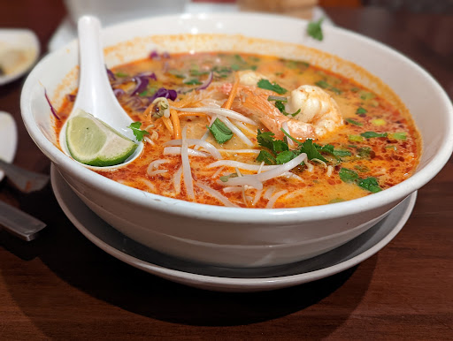 What a surprise! We ordered take out through UberEATS and it was definitely a good choice! I hadnt ever tried Laotian cuisine before so I was on the fence about ordering in for my first experience. I usually like to go and do a sit down meal when trying new cuisines so I have a chance to ask questions before making a decision. In any case, I threw caution to the wind (I know - really wild over here) and ordered away and it was definitely worth the risk! I got the Vegetarian Nam Salad consisting of marinated rice, coconut flakes, mint, scallions, parsley, lime leaves, and chili - served with lettuce wraps! My friend ordered the Kings soup - vermicelli noodles with bean sprouts, shredded lettuce, carrots, mint, cilantro, scallions in a red curry coconut broth. Both were delicious and very flavorful! The dishes werent overly spicy but they definitely had a kick (which I enjoyed). I enjoyed the different taste profiles, especially the coconut in the salad - sweet but not too sweet! The servings were ample, and Im glad we were able to share and taste each others meals - able to understand the menu a bit better this way. I also appreciated that the menu has a lot vegetarian friendly options (which is a always a hit or miss with Asian restaurants) so Im looking forward in trying other dishes in the future. Pricing was also fair, and I think overall we made out like bandits - paying less than what I think the food probably deserves given how well everything was prepared! Definitely will be back!