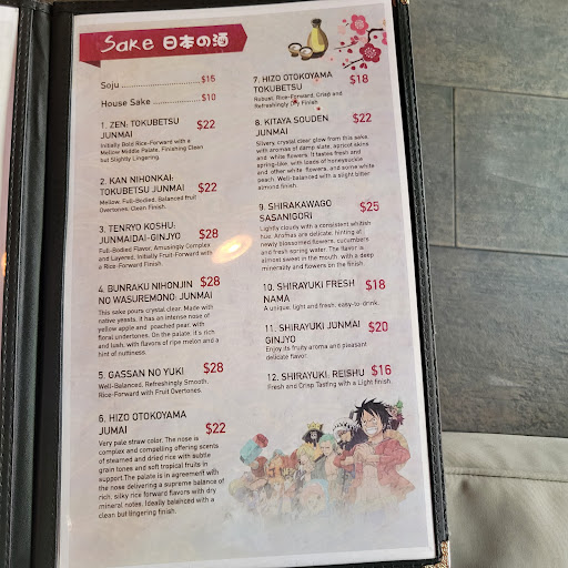 I like (being a nerd) the manga and the anime murals of naruto. Also the littlw bit of japenese they spoke to liven up the reaturant.The resteraunts food was great I got miso ramen and matcha tea it was good as well, but a little too milky.