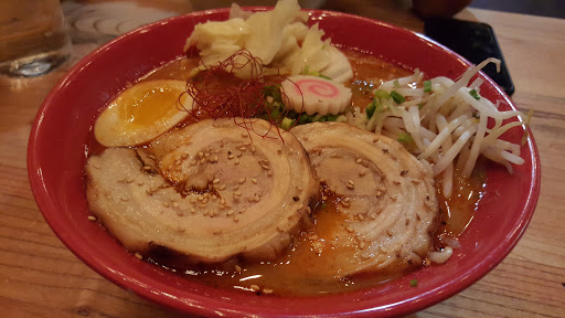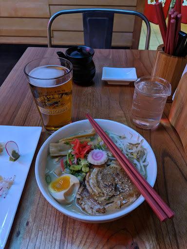 I decided to eat here for strictly Ramen and nothing else. I was let down. Terakawa s signature ramen is cheaper /and/ tastier than this places expensive ramen. The pork tasted old and chewy. Even slightly cold. Does not melt in your mouth at all compared to terakawa. The soup was not as hot as it should be. The egg tasted bland and was not marinated like terakawas. On a more positive note the staff seemed welcoming and the atmosphere in the restaurant was neat. The menu was a little overwhelming. Im sure other items on the menu would have tasted good, but the ramen I had was a huge disappointment. Better quality with a better price at Terakawa.