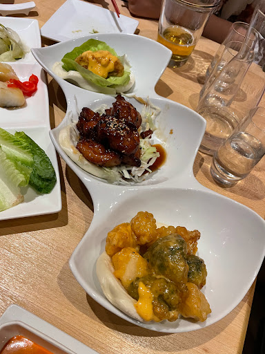 The menu is interesting so I decided to try one of each. The salad was okay, I think the dressing could be a bit more flavor and didnt taste homemade/fresh. The eggplant appetizer was very good and was impressed with preparation and seasoning. Its close to an eggplant patty that my mother used to make. Now for the sushi, the cuts are very small but its fresh and tasty and expensive. The Sake list is pretty good but like everything else a bit overpriced.