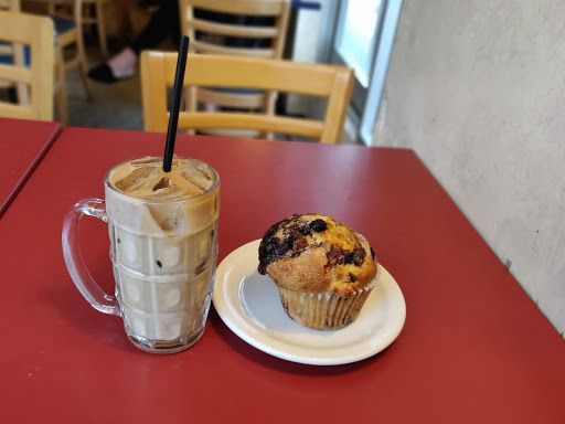 Nice quiet cafe. I had some peppermint iced tea and a huge chocolate chip scone! Barista was a little abrupt.