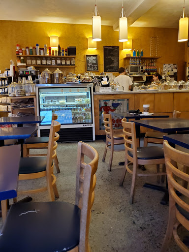There are many regular patrons who come to do work or socialize. The rows of closely placed tables allow patrons to have their own space without being isolated from those around them. The coffee is good if you like it strong (except at night when it tends to be stale) and the muffins are excellent. The pastries are made daily by the long-time manager, son of a baker and irascible contrarian. =) The outdoor patio is beautiful in nice weather, especially in the spring in summer when the surrounding plants bloom in the warm glow of the lights strung overhead.