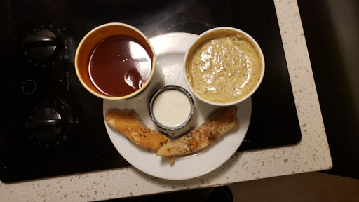 Food is good, service was very good, it was quiter than expected, 330 pm on a Saturday... with the Bucos playing... they have free play tablets for the kids.