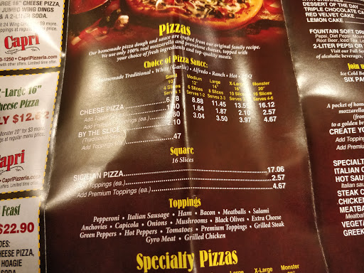 I work at a Dr. Office down the street, and me and the other staff all love Capris Delicious and reasonable prices.The only thing I will say is some of the staff do seem like they have a attitude, other then that great place to eat !