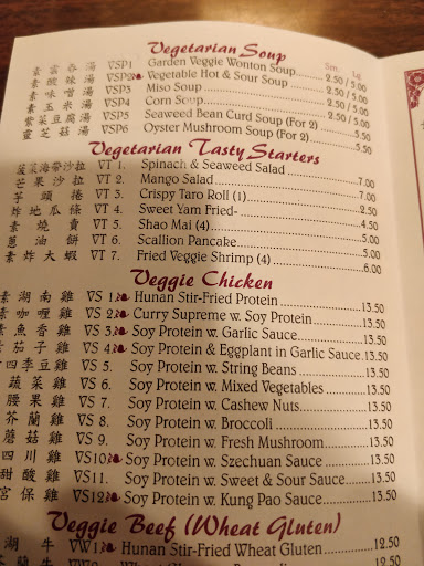 The soy chicken dishes are delicious, although they taste more like beef. Great vegetarian hot and sour soup, not very good lo mein. Overall quite tasty, if a little expensive.