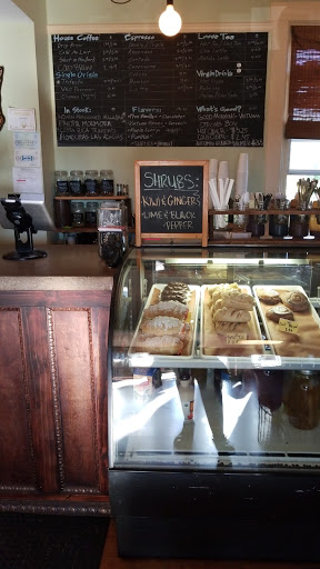 This coffee shop is unlike anything else in the area. Everything is delicious, the staff is super friendly, and the environment is just what you would want in a coffee shop. In the winter I usually order a latte made with syrups made in house. The flavor selection is great. They have some standard flavors, but also creative ones like peanut butter or maple curry. They may sound odd, but the baristas know what they are doing. They also have a great selection of teas. In the summer, my choice is iced tea. They usually have 3 choices of pre-brewed tea ready to pour over ice. If you are looking for snacks, those will also not disappoint. The fresh stuff comes from a local deli. They also have a great selection of chips and unique sodas. The building seems to be an old house. All of the rooms are available upstairs for use. In one room there is a sofa and foosball table. in other rooms there are takes and chairs of various sizes. The rooms allow for a much homier feel and a bit of privacy unlike the nearby chair coffee shop. Outside they offer seating on the porch and in the grass. There are picnic tables with umbrellas. Dogs are welcome outside, and you can even buy a tasty treaty for your dog inside. Like any good coffee shop they offer free wifi. Unfortunately, some folks abused this service, so now it is limited to 2 hours. That really isnt too much of a problem though because everything is so addicting you will be buying something else to east our drink in less than 2 hours. The true asset of this place is the staff. They can help you decide or just whip up a great coffee. They are friendly and always remember a face. If you havent been here yet, fix that now!