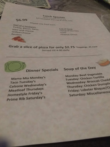 Very comfortable place to enjoy a meal. Nice large comfortable booths or you can sit at the bar. They have different specials every day. Food is pretty good.