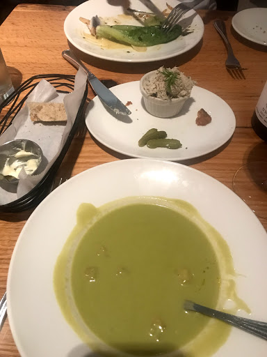 I recently returned to Legume for the first time since around 2007, when I ate at the old location in Regent Square. The new space is much larger, and the restaurant has a significantly more upscale ambiance from what I remember. There is also now an attached bar area (called Butterjoint) which offers beers, wines and cocktails with your dinner. I believe the old place in Regent Square was BYOB, so that was a pleasant surprise. The wait staff were very friendly from the outset, and we promptly were served water and offered drinks. We ordered appetizers and entrees, and received fresh baguette that was still warm to eat while we waited. Someone was always by to refill our waters, and we were offered a refill on bread several times. We both had the gazpacho for a starter, which was delicious and served with a dollop of ricotta cheese in the center, and came with a toasted crostini. My entree was a chicken breast, which was wonderful and very juicy, which was served with crispy polenta, kale and beans. My wife had a crispy polenta entree that was served with greens and vegetables over it. I tried hers and it was delicious as well. Parking across the street was only $2 with valet service in the Sterling Plaza Garage. All in all, it was an excellent experience and we would love to return again sometime soon.