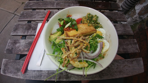 Very good chai lattes, delicious baked goods, and a selection of chilled drinks for a quick fix. Their Banh Mi Tofu is stunningly good, and the prices arent too ridiculously high.
